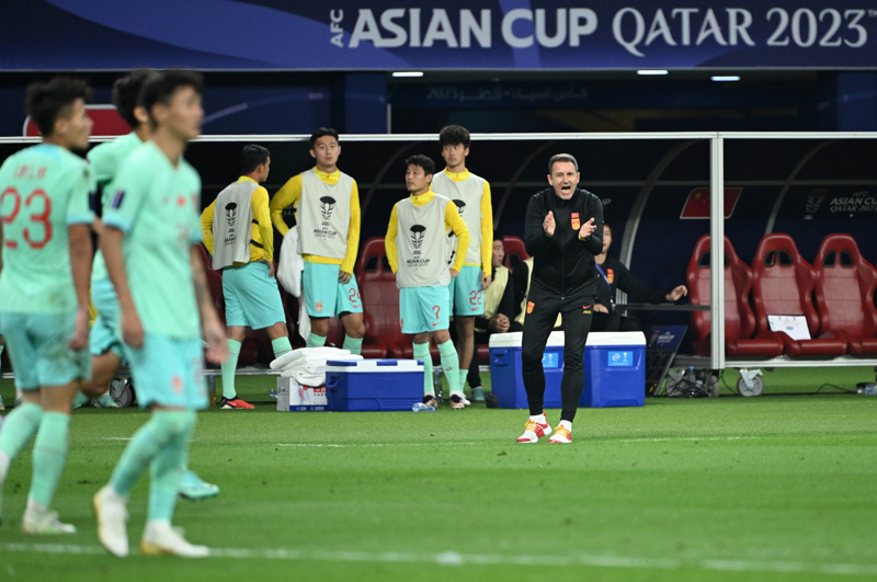 2024年1月22日,中国队主教练扬科维奇(右)在比赛中指挥。\n 当日,在卡塔尔多哈哈里发国际体育场举行的男足亚洲杯小组赛A组比赛中,中国队对阵卡塔尔队。\n 新华社记者 孙凡越 摄